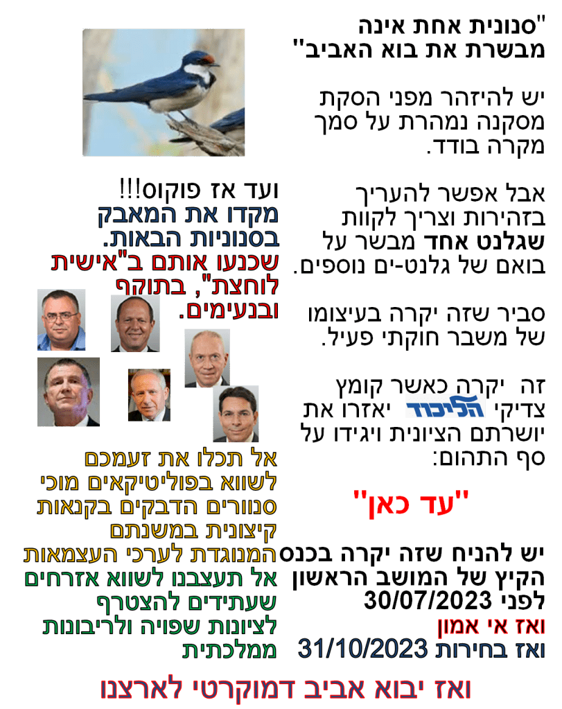 סנונית אחת… פורסם ע"יoaf91224 במרץ 2023פורסם בכללי פורסם בפייסבוק 24/03/2023 לשתף לחיצה לשיתוף ב-X (נפתח בחלון חדש) X לחיצה לשיתוף בפייסבוק (נפתח בחלון חדש) פייסבוק אהבתי טוען... קשור